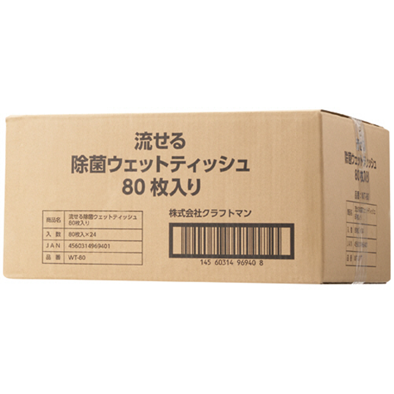 クラフトマン 除菌 トイレに流せるウエットティッシュ ノンアルコールタイプ WT-80 1920枚/1セット(ご注文単位1セット)【直送品】