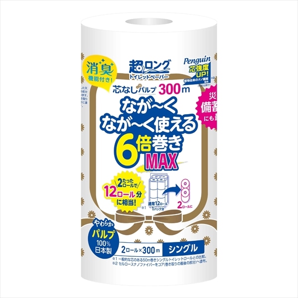 丸富製紙 ペンギン 超ロング パルプ 6倍巻き シングル 2ロール 1パック(ご注文単位1パック)【直送品】
