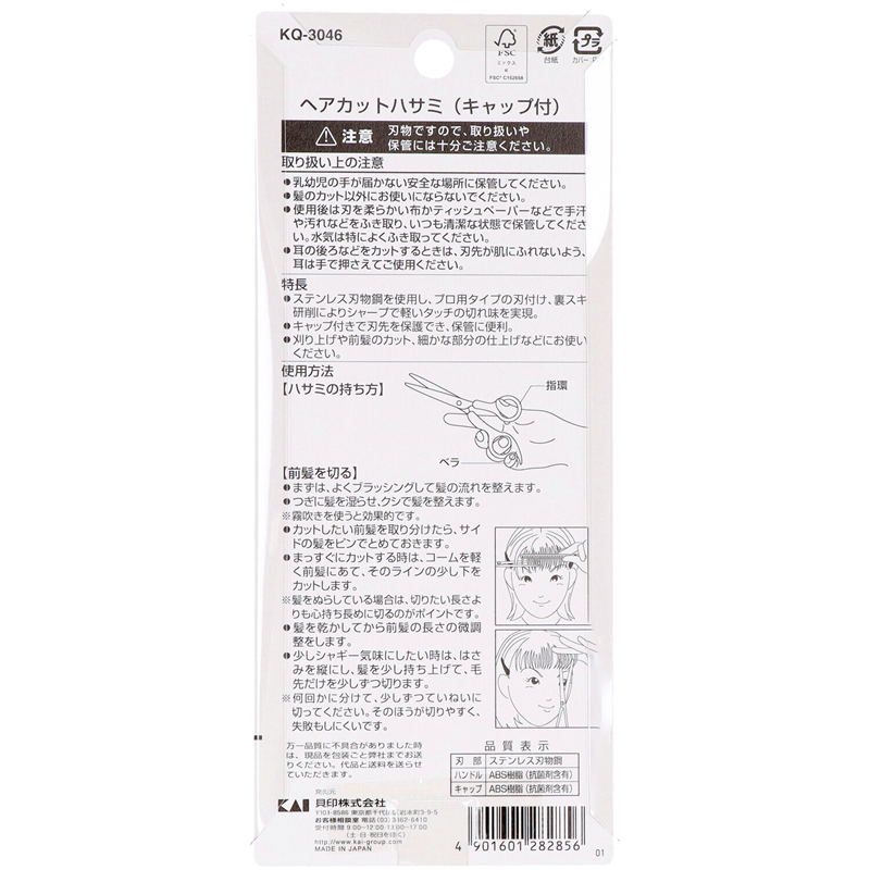 貝印 KQ3046 ヘアカットハサミ(キャップ付) 1個(ご注文単位6個)【直送品】
