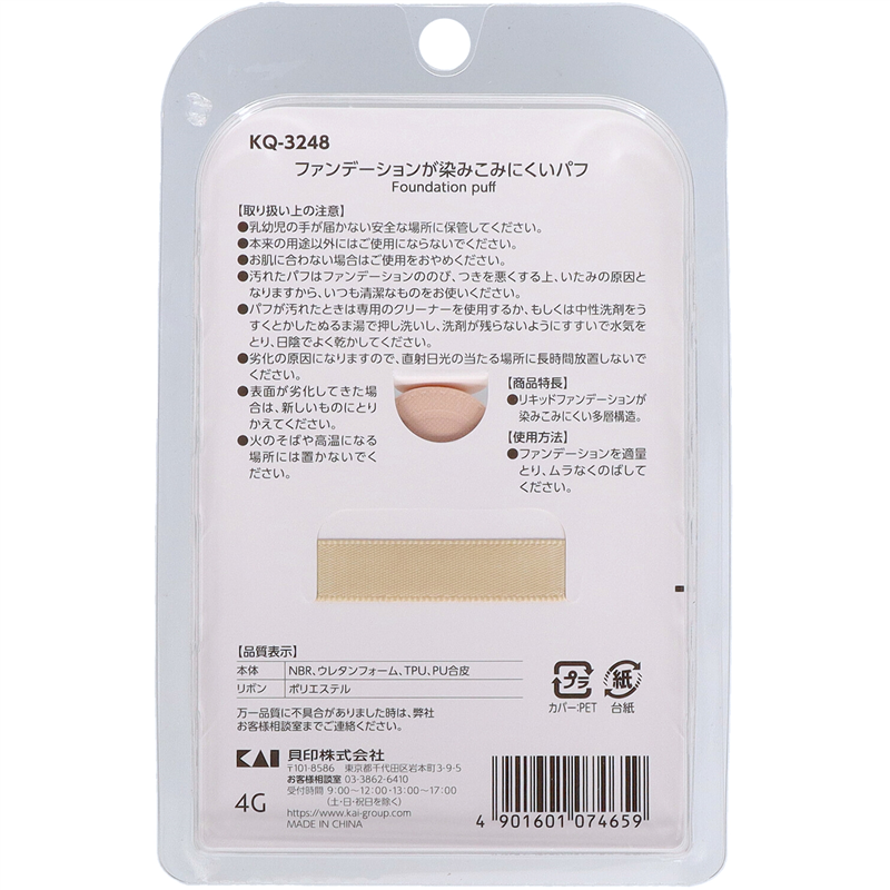 貝印 KQ3248 ファンデーションが染みこみにくいパフ 1個(ご注文単位6個)【直送品】