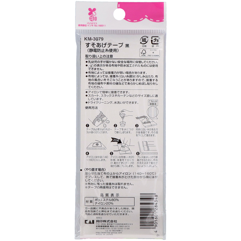貝印 KM3079 すそあげテープ 黒(静電防止糸使用) 1個(ご注文単位12個)【直送品】