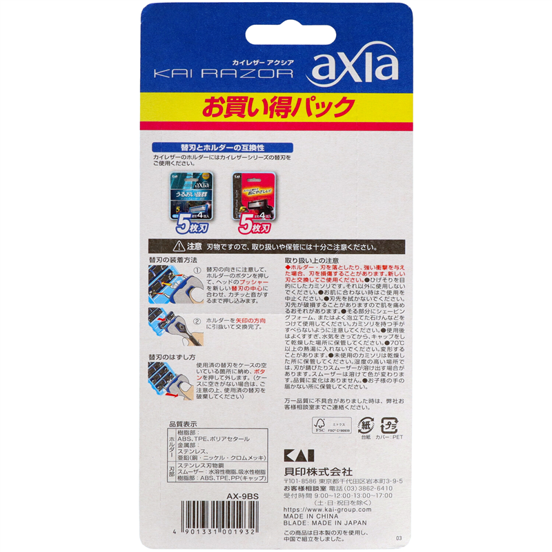 貝印 GA0061X8 axia(アクシア) バリューパックスリム(替刃9コ付) 1袋(ご注文単位6袋)【直送品】