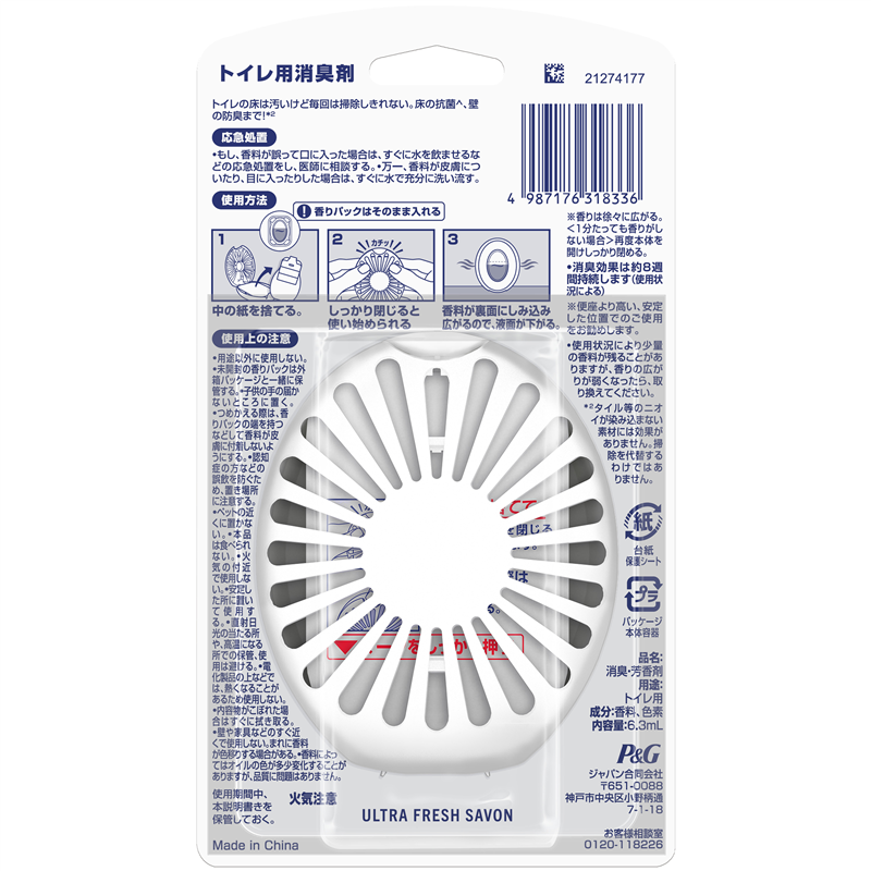 P&Gジャパン合同会社 ファブリーズ トイレ用消臭剤プレミアムシリーズ+抗菌ウルトラフレッシュシャボン 1個(ご注文単位1個)【直送品】