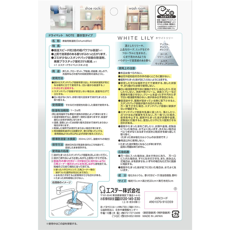 エステー ドライペットNOTE置き型タイプホワイトリリー 350mL 1パック(ご注文単位1パック)【直送品】