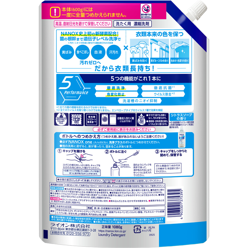ライオン NANOX one 洗浄プラス つめかえ用超特大 1080G 1パック(ご注文単位1パック)【直送品】