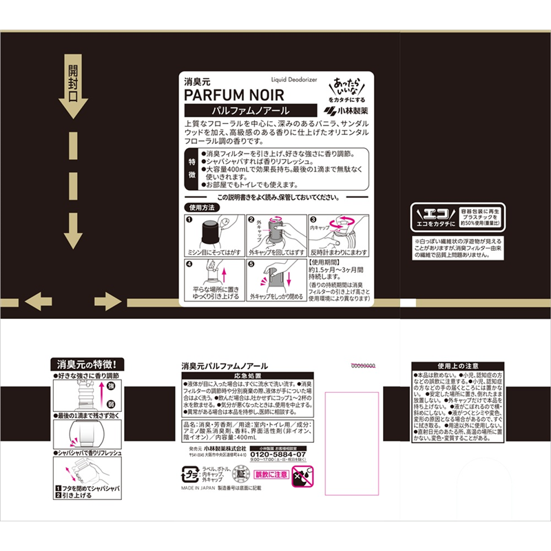 小林製薬 消臭元パルファムノアール 400mL 1パック(ご注文単位1パック)【直送品】