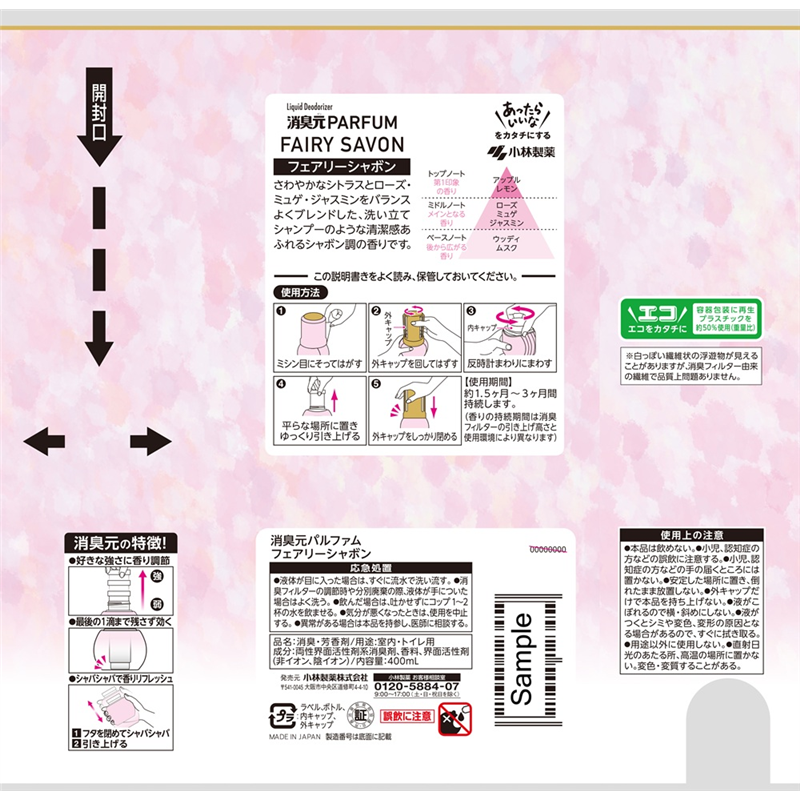 小林製薬 消臭元パルファムフェアリーシャボン 400mL 1パック(ご注文単位1パック)【直送品】