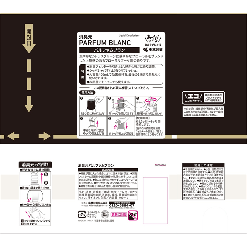 小林製薬 消臭元パルファムブラン 400mL 1パック(ご注文単位1パック)【直送品】