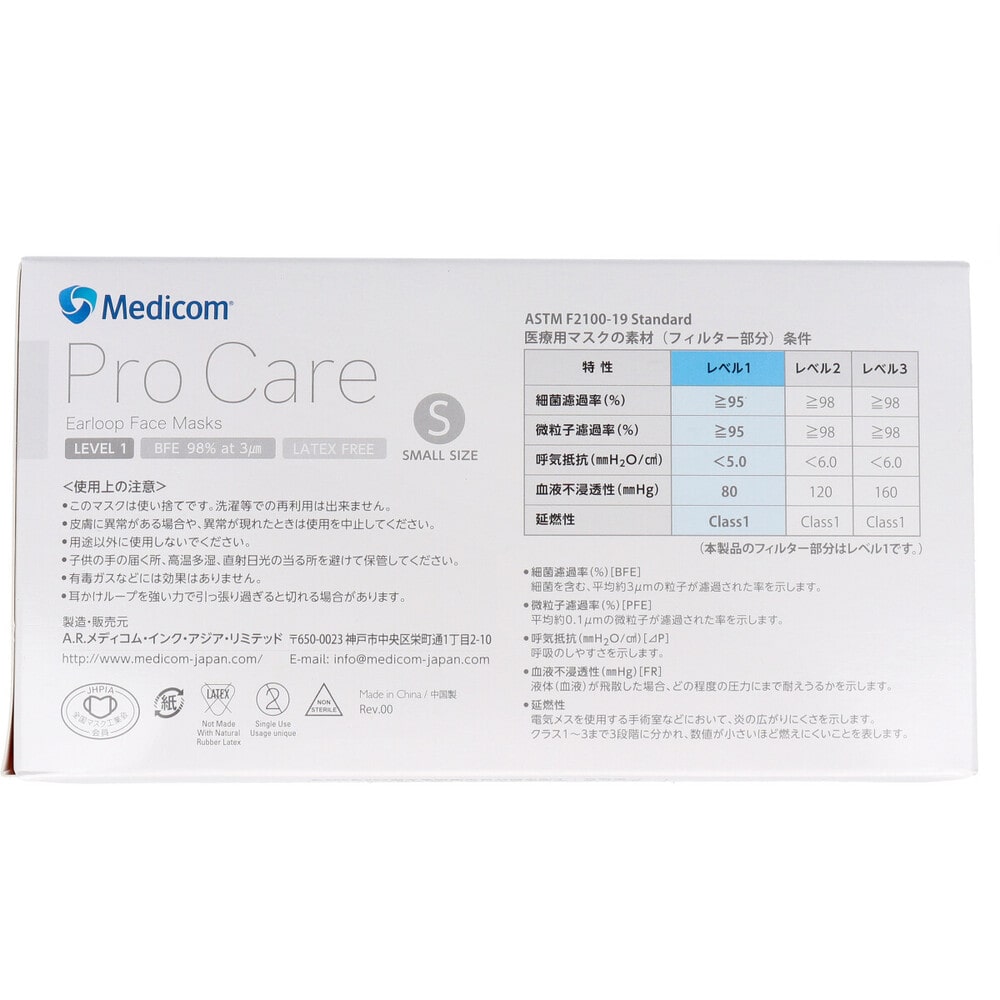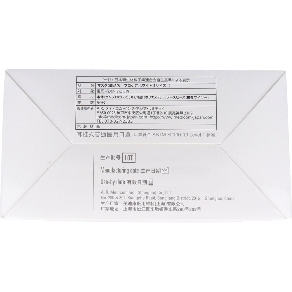 A.R.メディコムインク・アジアリミテッド プロケア イヤーループマスク Sサイズ ホワイト 50枚入 1箱(ご注文単位1箱)【直送品】