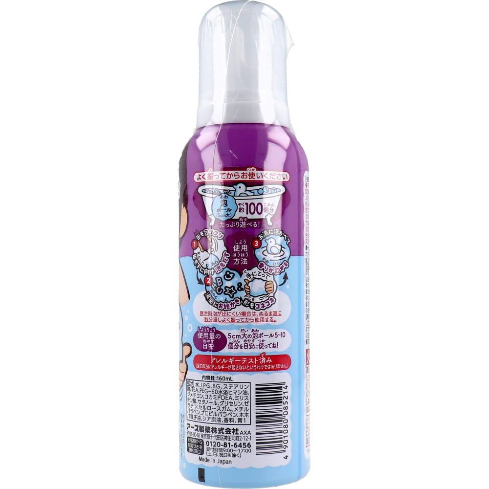 アース製薬 温泡 ONPO Kids 遊べる入浴 あわっぴー ブドウの香り ふんわり水色の泡 160mL 1個(ご注文単位1個)【直送品】