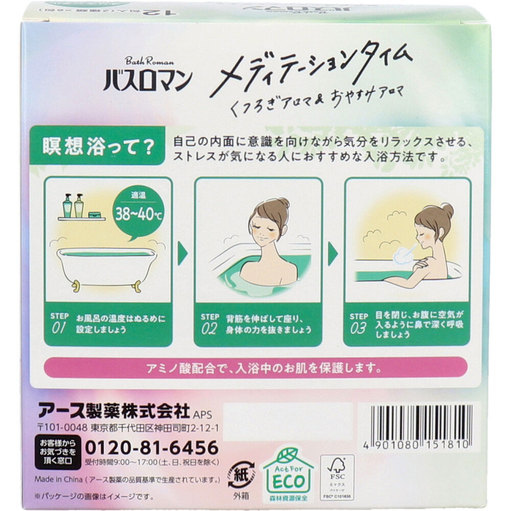 アース製薬 バスロマン メディテーションタイム くつろぎアロマ&おやすみアロマ 12包入(2種類×6包) 1パック(ご注文単位1パック)【直送品】