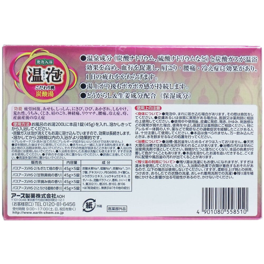アース製薬 発泡入浴剤 温泡 こだわり桃 炭酸湯 20錠入 1箱(ご注文単位1箱)【直送品】
