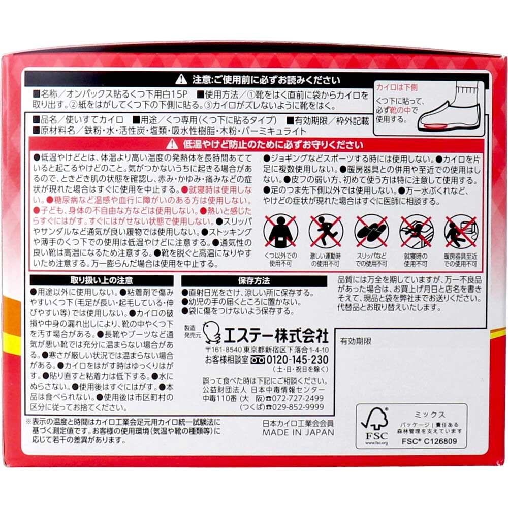 エステー 貼るオンパックス くつ下用 くつ下に貼るタイプ 白 15足入 1パック(ご注文単位1パック)【直送品】