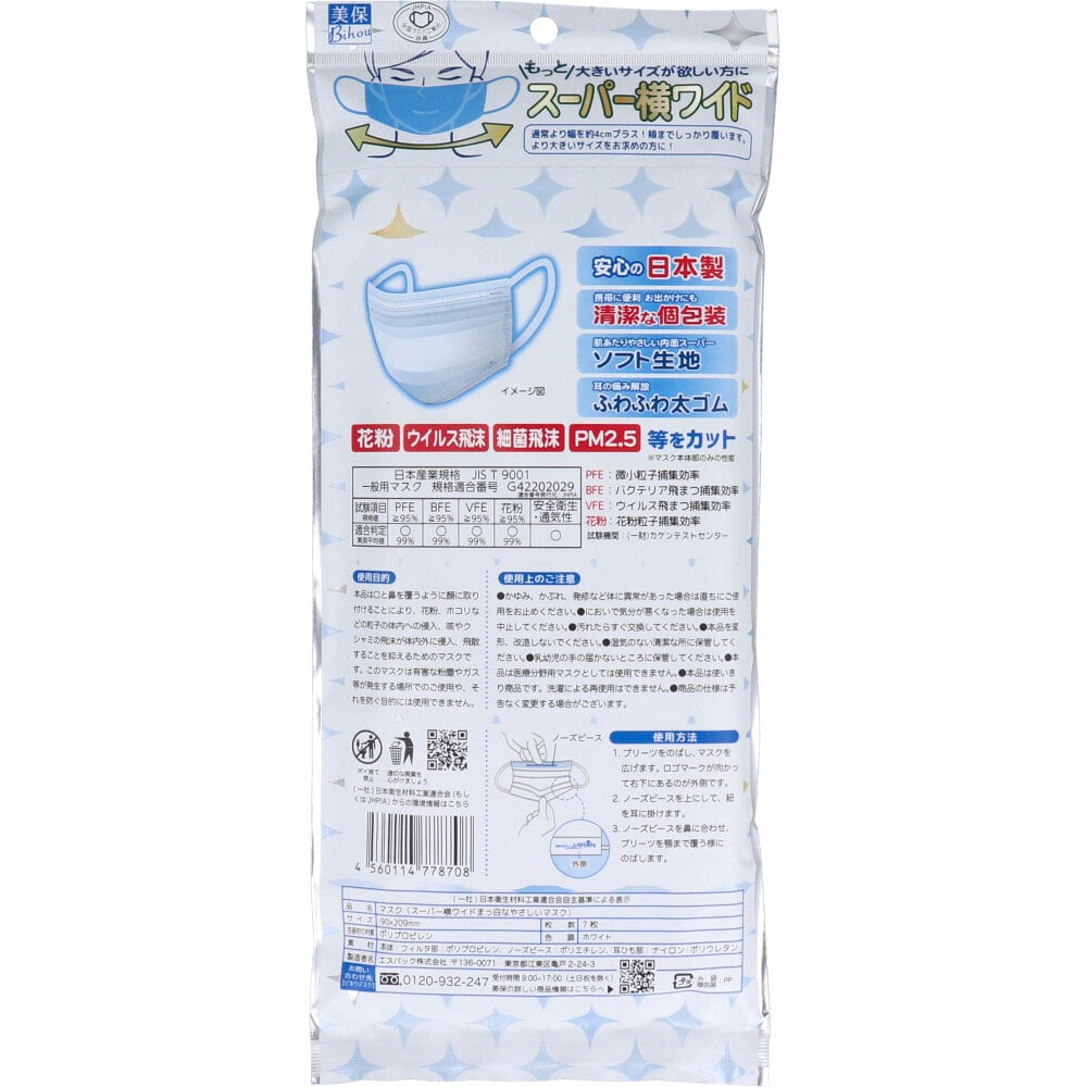 エスパック スーパー横ワイド まっ白なやさしいマスク 横幅BIG 特大サイズ ホワイト 個包装 7枚入 1袋(ご注文単位1袋)【直送品】