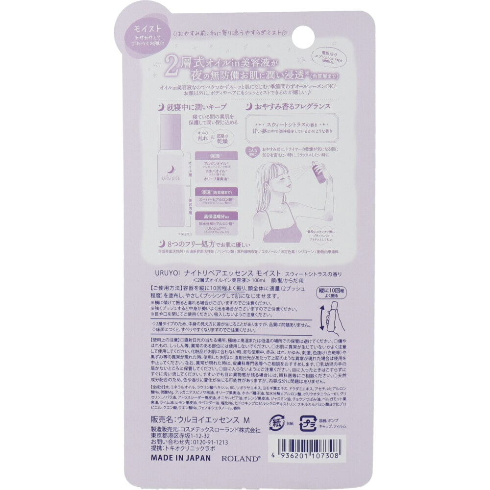 コスメテックスローランド URUYOI ナイトリペアエッセンス モイスト スウィートシトラスの香り 100mL 1個(ご注文単位1個)【直送品】