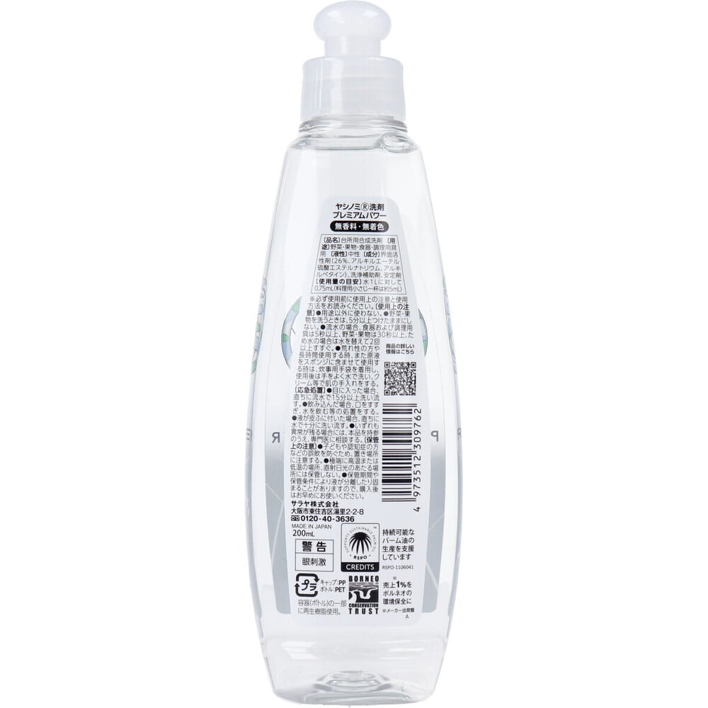 サラヤ ヤシノミ洗剤 プレミアムパワー 濃縮タイプ 200mL 1個(ご注文単位1個)【直送品】