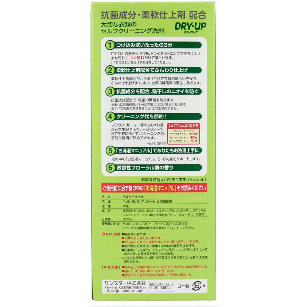 サンスター ドライアップ 大切な衣類のセルフクリーニング洗剤 本体 300mL 1個(ご注文単位1個)【直送品】