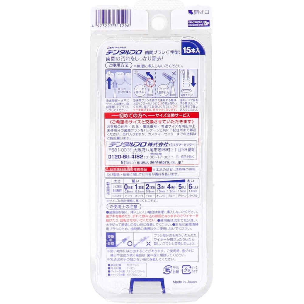 デンタルプロ 歯間ブラシ I字型 激細タイプ サイズ0(SSSS) 15本入 1パック(ご注文単位1パック)【直送品】