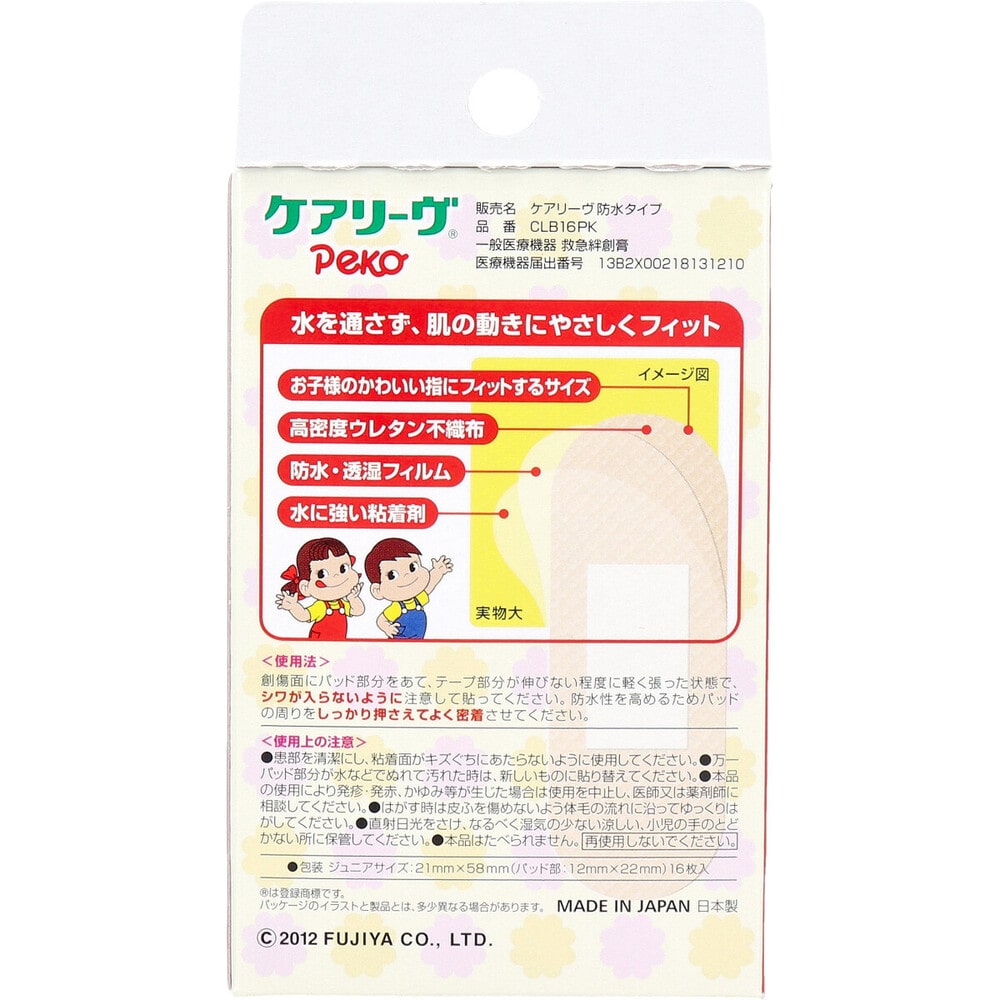 ニチバン ケアリーヴ ペコちゃん 防水タイプ ジュニアサイズ 16枚入 1箱(ご注文単位1箱)【直送品】