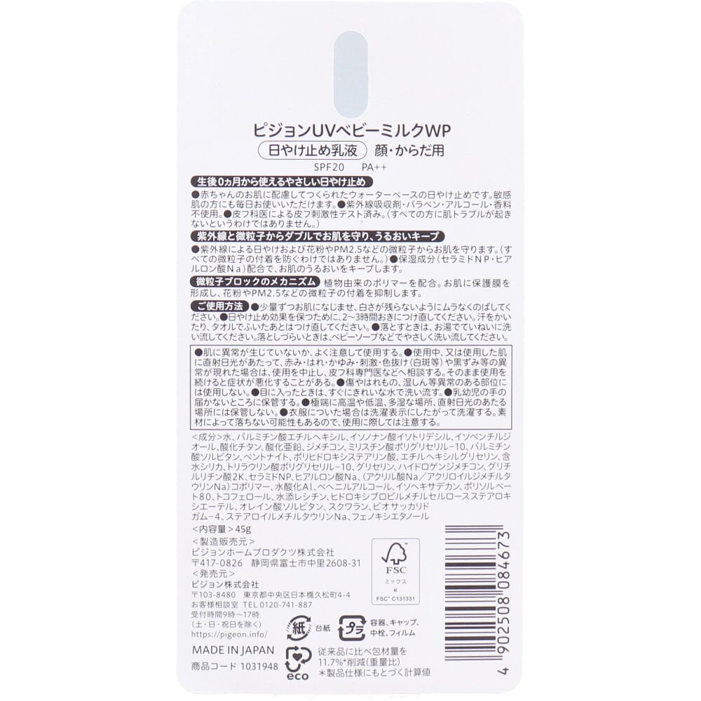 ピジョン UVベビーミルク Wプロテクト SPF20 PA++ 45g 1個(ご注文単位1個)【直送品】