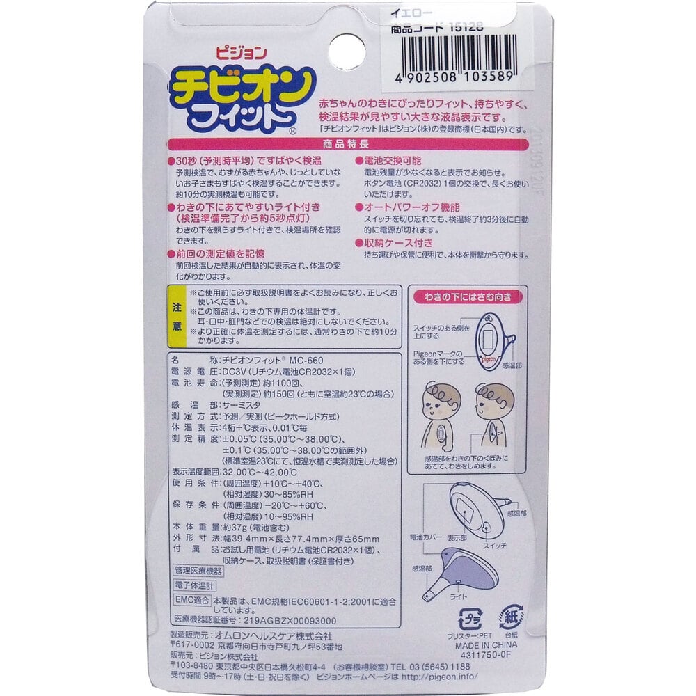 ピジョン チビオンフィット (ベビーわき下体温計) イエロー 1個(ご注文単位1個)【直送品】