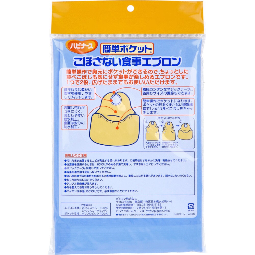 ピジョン ハビナース 簡単ポケット こぼさない食事エプロン ブルー 1個(ご注文単位1個)【直送品】