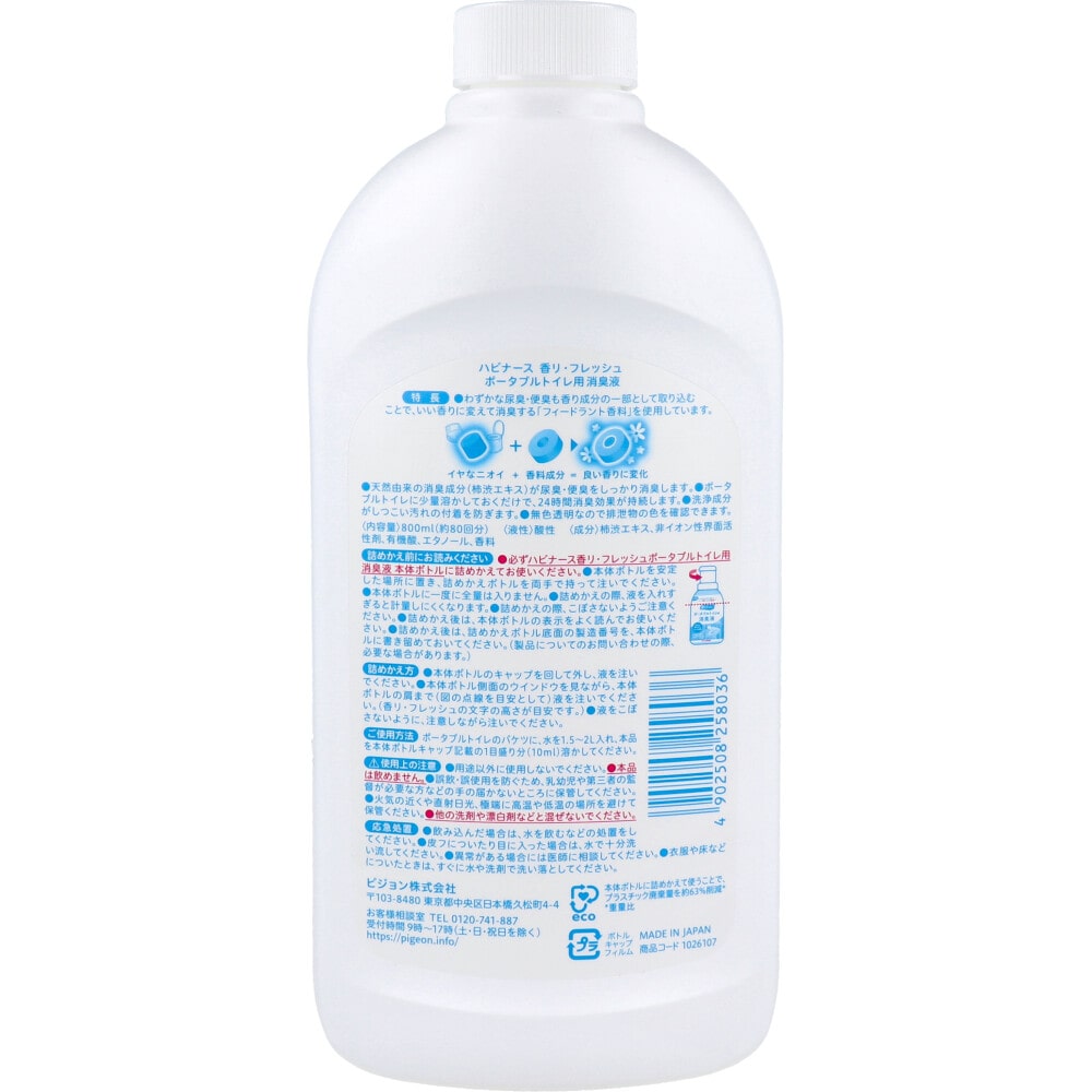 ピジョン ハビナース 香リフレッシュポータブルトイレ用消臭液 詰替用 フレッシュフローラルの香り 約3.3回分 800mL 1個(ご注文単位1個)【直送品】
