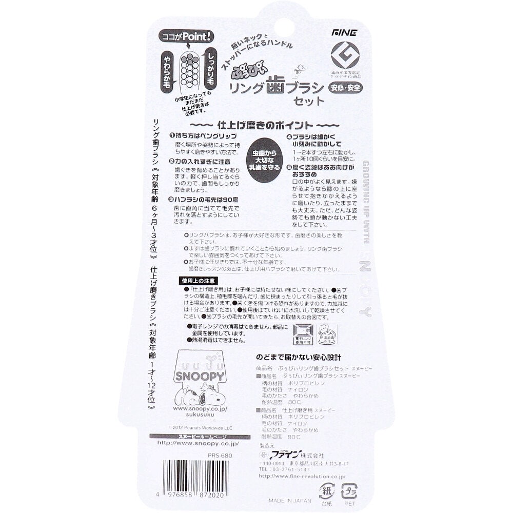 ファイン ぷぅぴぃリング歯ブラシセット スヌーピー リング歯ブラシ&仕上げ磨きブラシ 6ヶ月-3才位 1セット入 1セット(ご注文単位1セット)【直送品】
