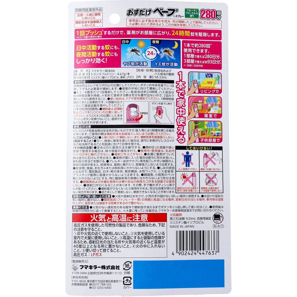 フマキラー おすだけベープスプレー フローラルフルーティの香り 280回分 58.33mL 1個(ご注文単位1個)【直送品】