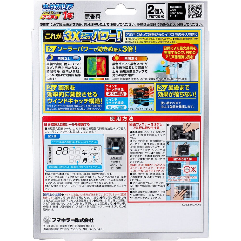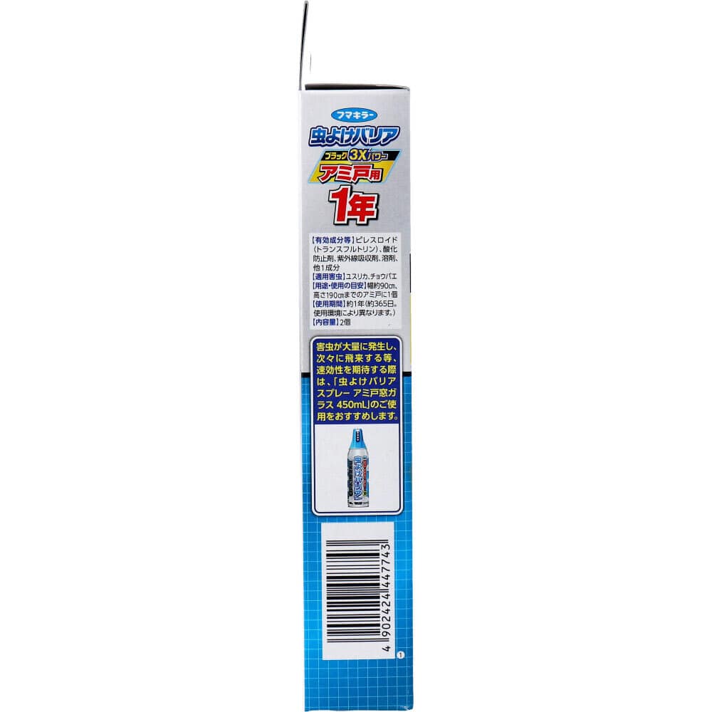フマキラー 虫よけバリアブラック3Xパワー アミ戸用 1年用 2個入 1パック(ご注文単位1パック)【直送品】