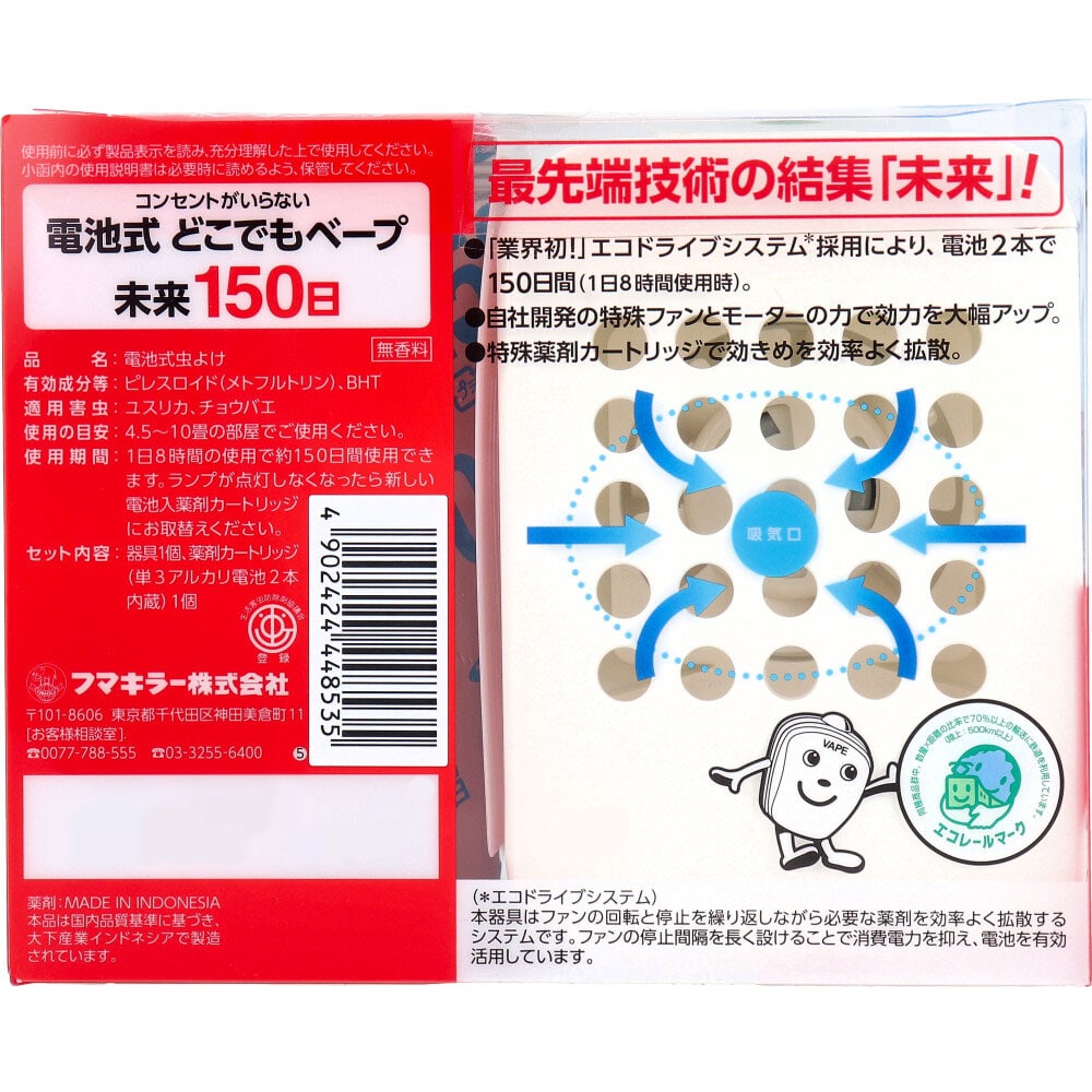 フマキラー どこでもベープ 未来 150日セット パールホワイト 1セット(ご注文単位1セット)【直送品】