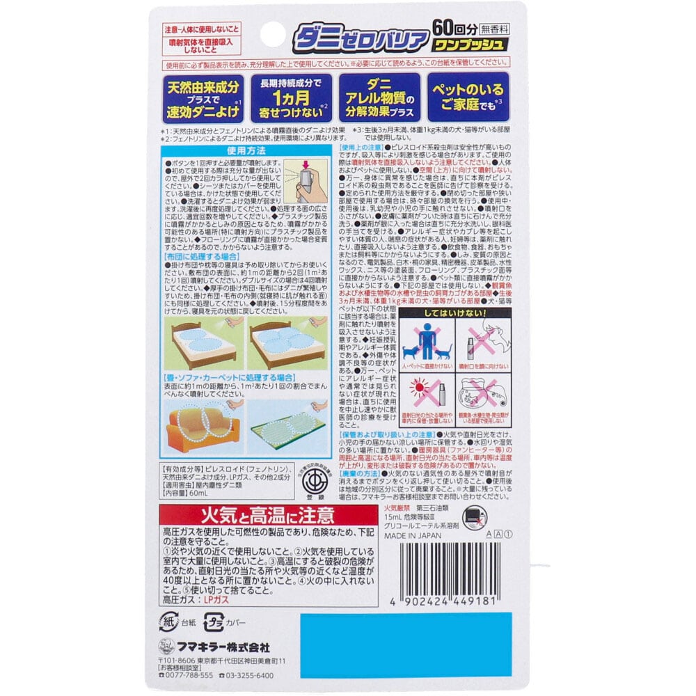 フマキラー ダニゼロバリア ワンプッシュ 60回分 1個(ご注文単位1個)【直送品】