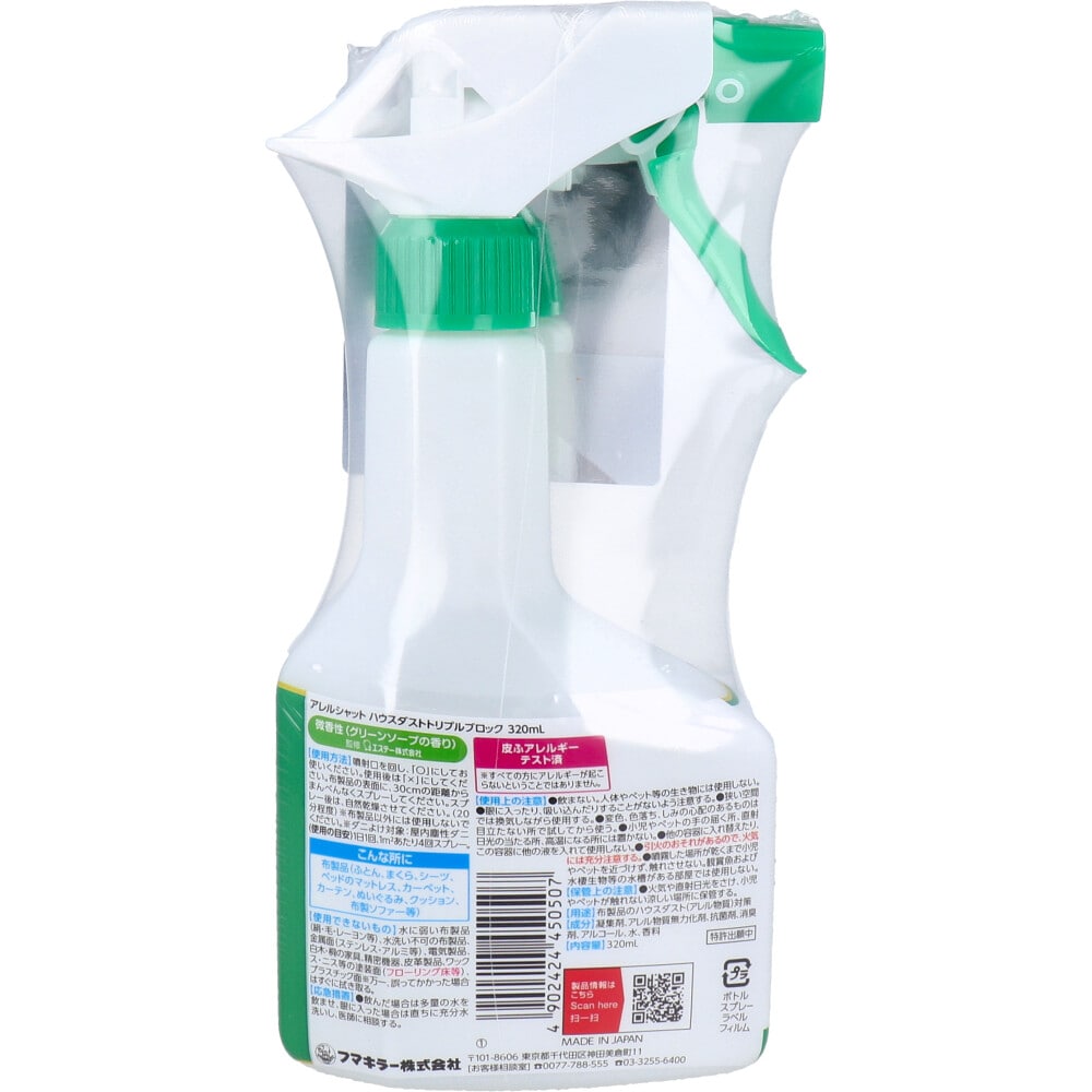 フマキラー アレルシャット ハウスダストトリプルブロック 微香性 グリーンソープの香り 320mL 1個(ご注文単位1個)【直送品】