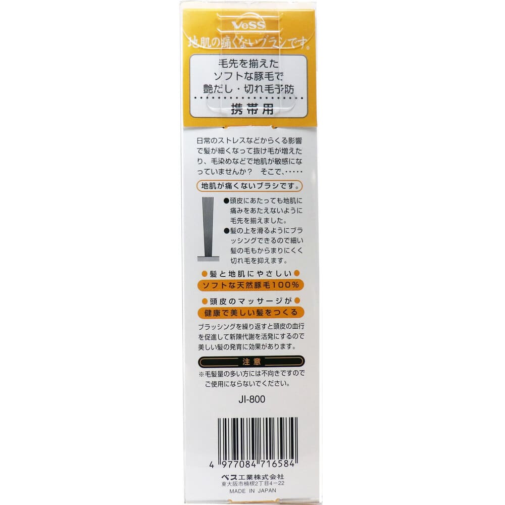 ベス工業 ベス 地肌の痛くないブラシ 携帯用 JI-800 1個(ご注文単位1個)【直送品】