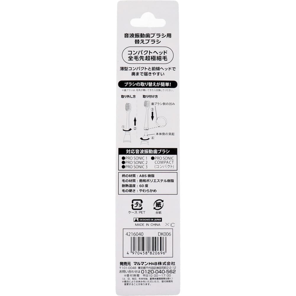 マルマン 音波振動歯ブラシ プロソニックコンパクトやわらかめ 替えブラシ DK006 超極細毛 2本入 1パック(ご注文単位1パック)【直送品】