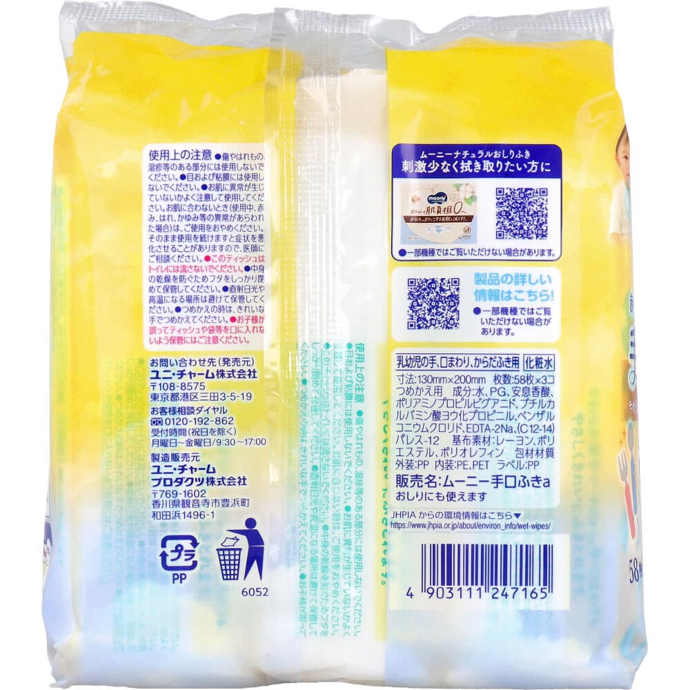ユニ・チャーム ムーニー 手口ふき 詰替用 58枚入×3個 1パック(ご注文単位1パック)【直送品】
