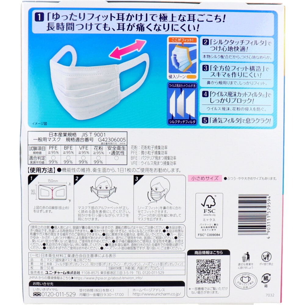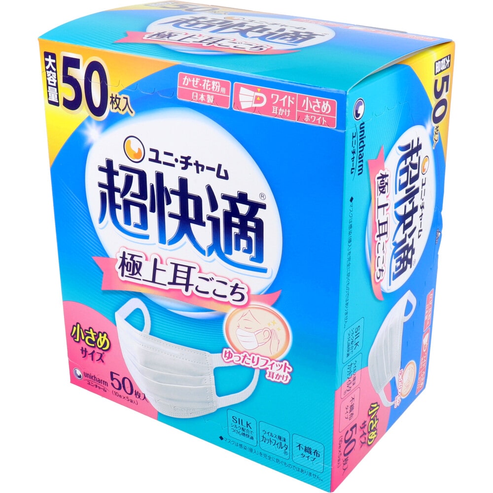 ユニ・チャーム 超快適マスク プリーツタイプ かぜ・花粉用 ホワイト 小さめサイズ 50枚入 1箱(ご注文単位1箱)【直送品】
