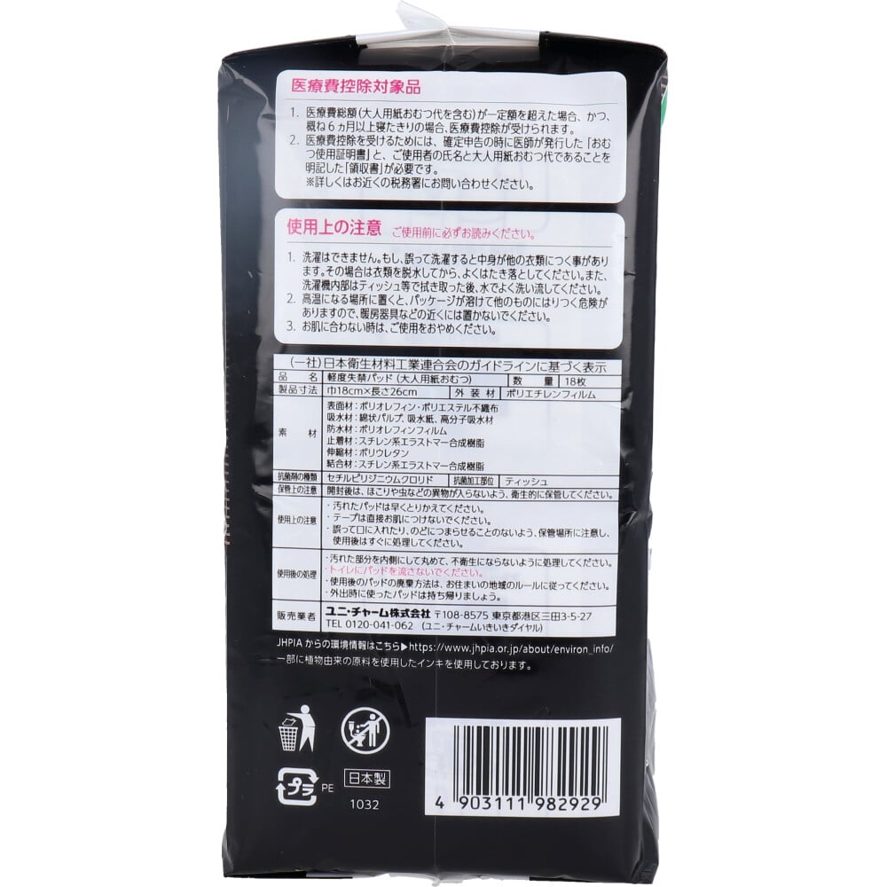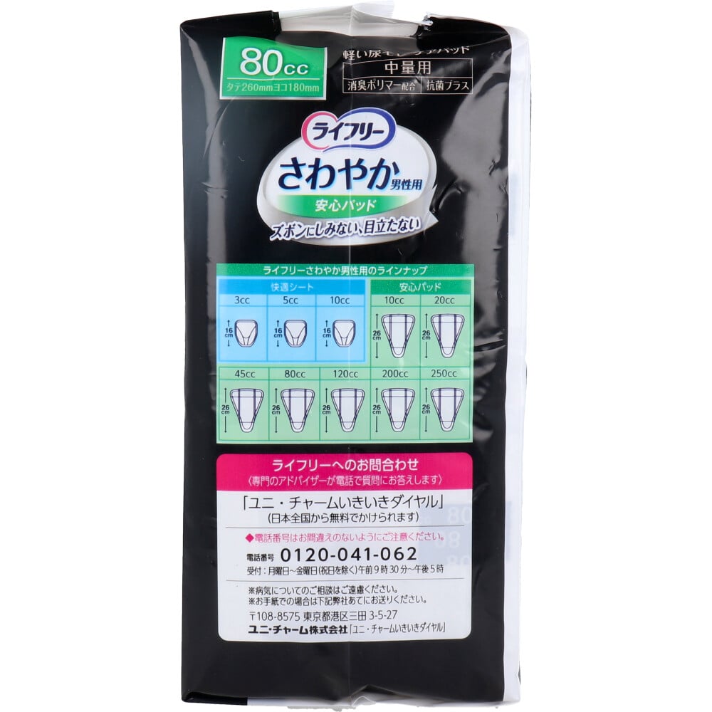 ユニ・チャーム ライフリー さわやかうす型パッド 男性用 80cc 中量用 18枚入 1パック(ご注文単位1パック)【直送品】