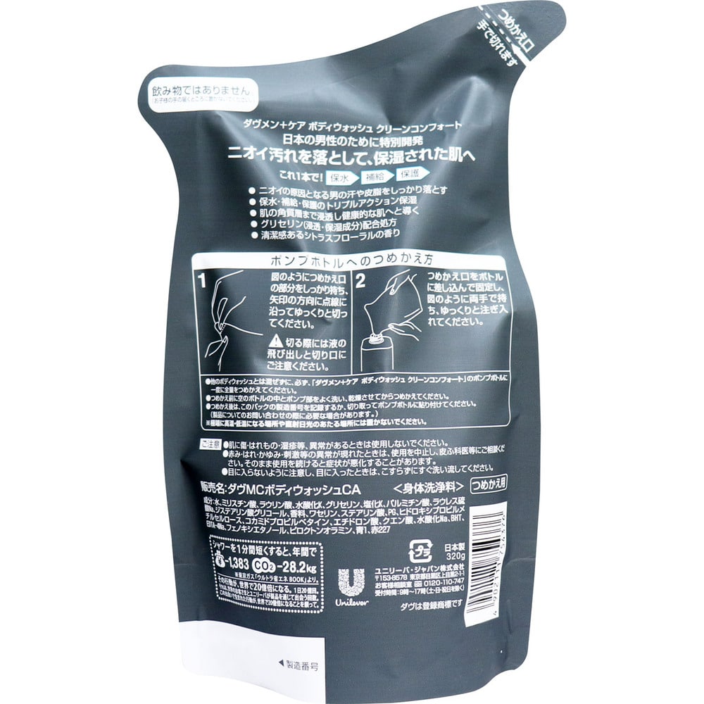 ユニリーバ・ジャパン ダヴメン+ケア ボディウォッシュ クリーンコンフォート 詰替用 320g 1個(ご注文単位1個)【直送品】