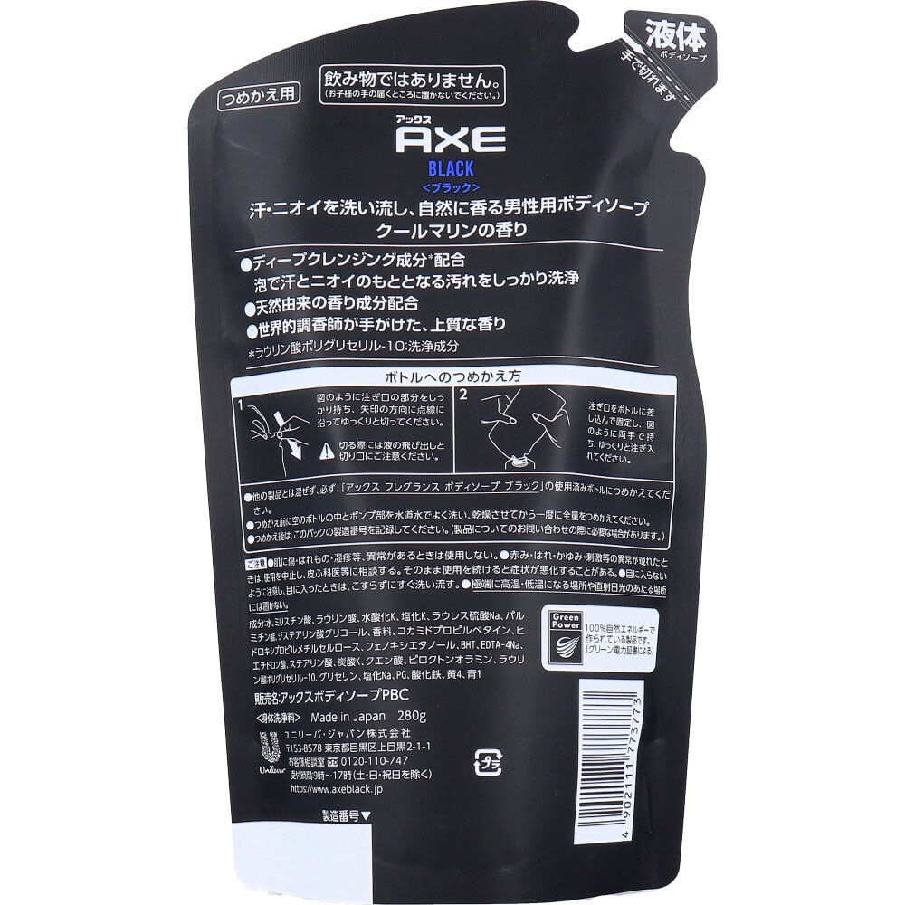 ユニリーバ・ジャパン アックス フレグランス ボディソープ ブラック 詰替用 280g 1個(ご注文単位1個)【直送品】