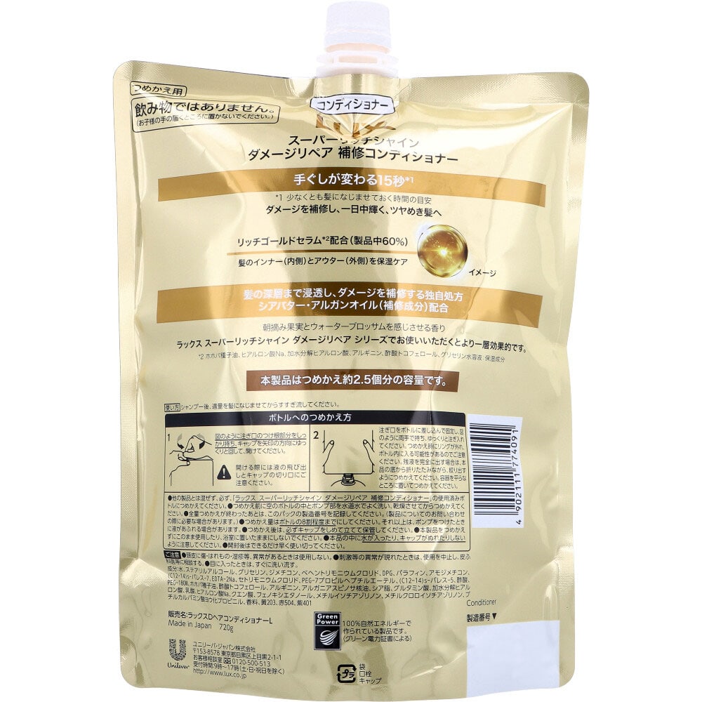 ユニリーバ・ジャパン ラックス スーパーリッチシャイン ダメージリペア 補修コンディショナー 詰替用 720g 1個(ご注文単位1個)【直送品】