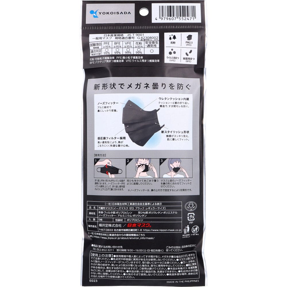 横井定 イーズマスク ゼロ レギュラーサイズ ディープブラック 5枚入 1袋(ご注文単位1袋)【直送品】