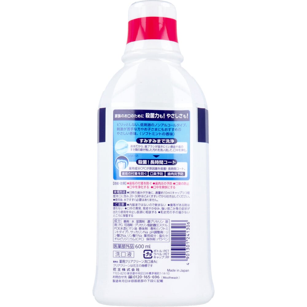 花王 クリアクリーン 薬用デンタルリンス ノンアルコール 洗口液 600mL 1個(ご注文単位1個)【直送品】