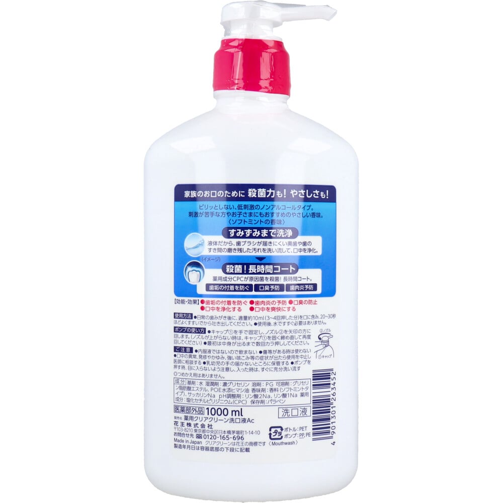 花王 クリアクリーン 薬用デンタルリンス ノンアルコール 洗口液 1000mL 1個(ご注文単位1個)【直送品】