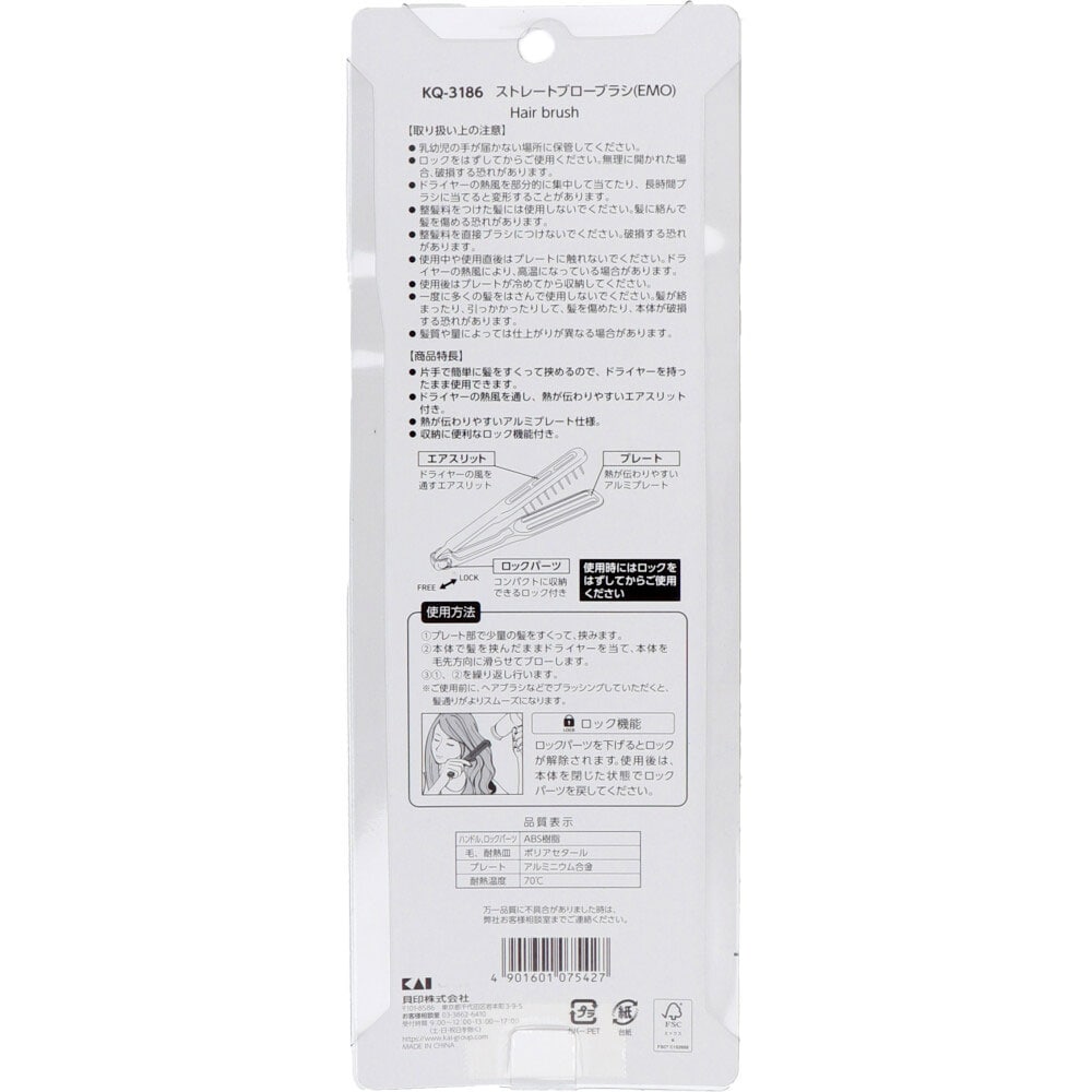 貝印 ストレートブローブラシ(EMO) KQ-3186 1個(ご注文単位1個)【直送品】