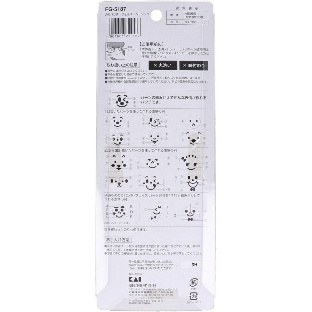 貝印 ちゅーぼーず のりパンチ・フェイス ベーシック FG-5187 1個(ご注文単位1個)【直送品】