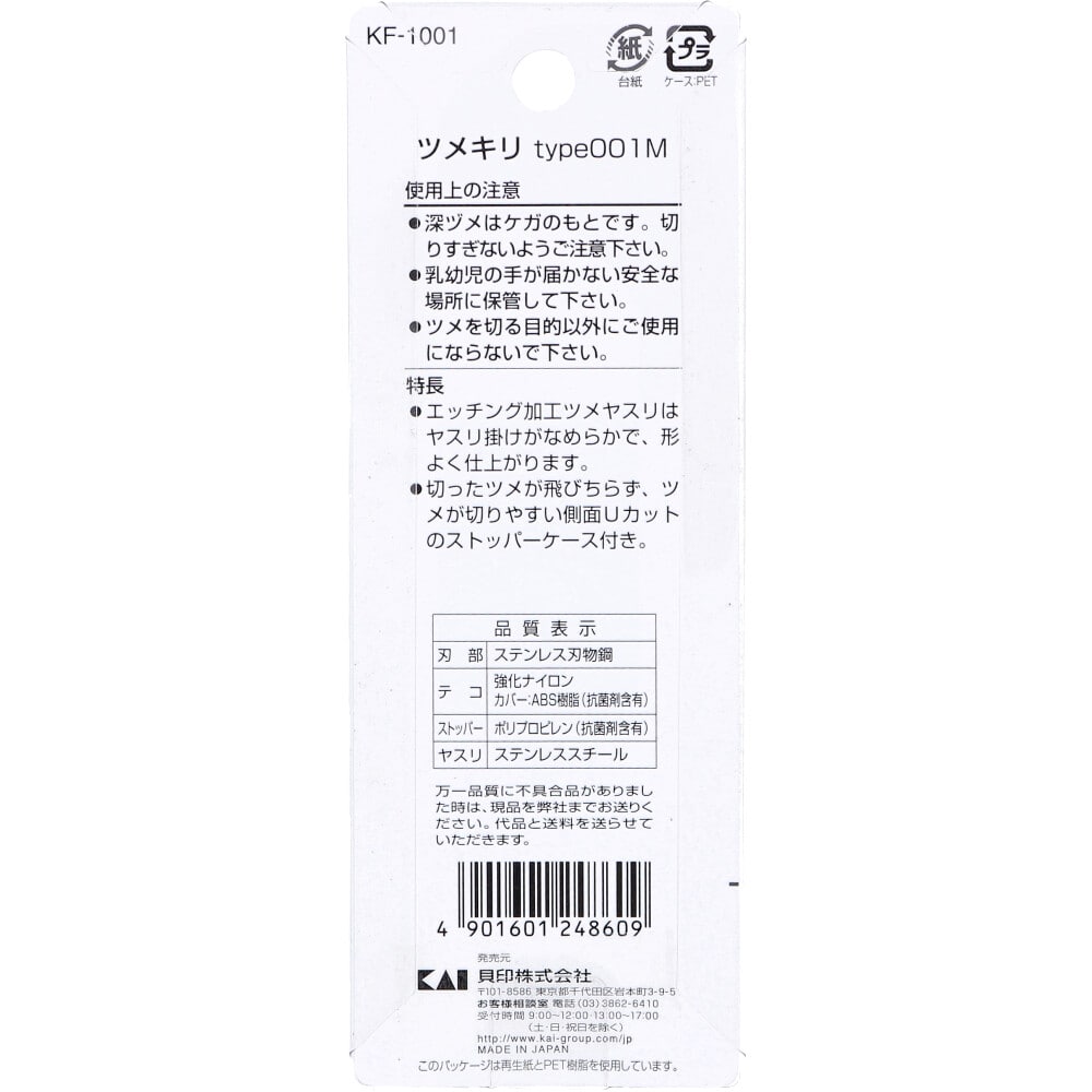 貝印 119 ツメキリ001 Mサイズ カーブ刃 KF-1001 1個入 1個(ご注文単位1個)【直送品】