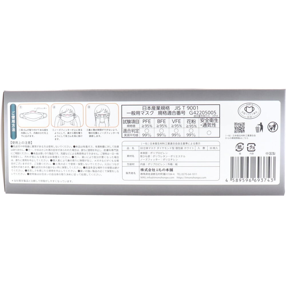 iiもの本舗 3D立体マスク ダイヤモンド型 ホワイト 個包装 30枚入 1箱(ご注文単位1箱)【直送品】
