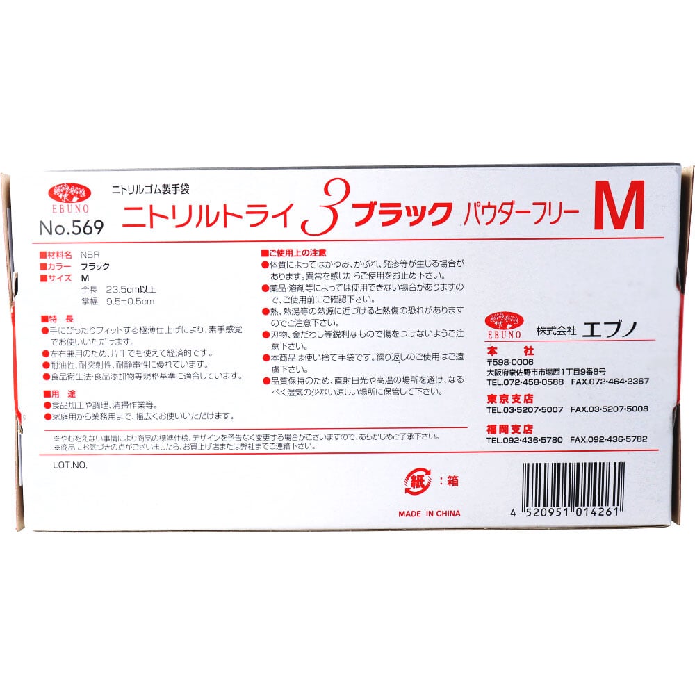 エブノ 【業務用】No.569 ニトリルトライ3 ブラック パウダーフリー ニトリルゴム製 使い捨て手袋 Mサイズ 100枚入 1箱(ご注文単位1箱)【直送品】