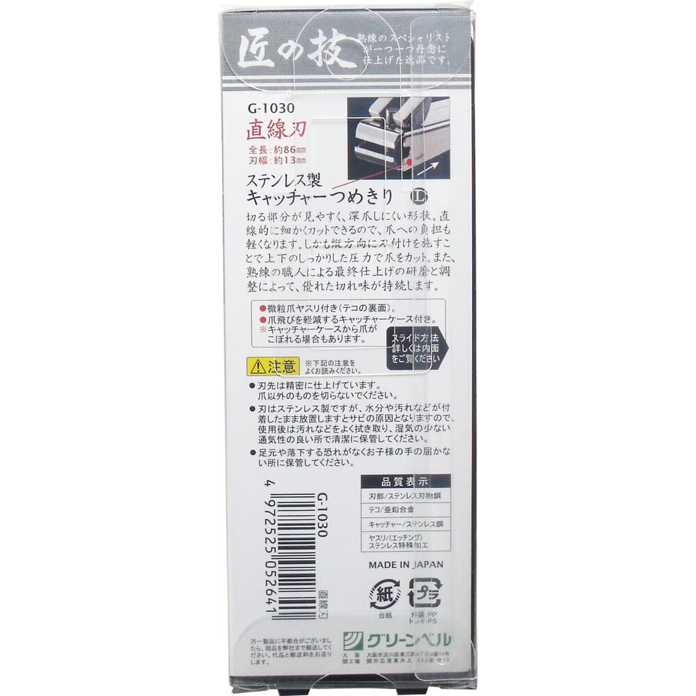 グリーンベル 匠の技 ステンレス製キャッチャーつめきり 直線刃 L G-1030 1個(ご注文単位1個)【直送品】